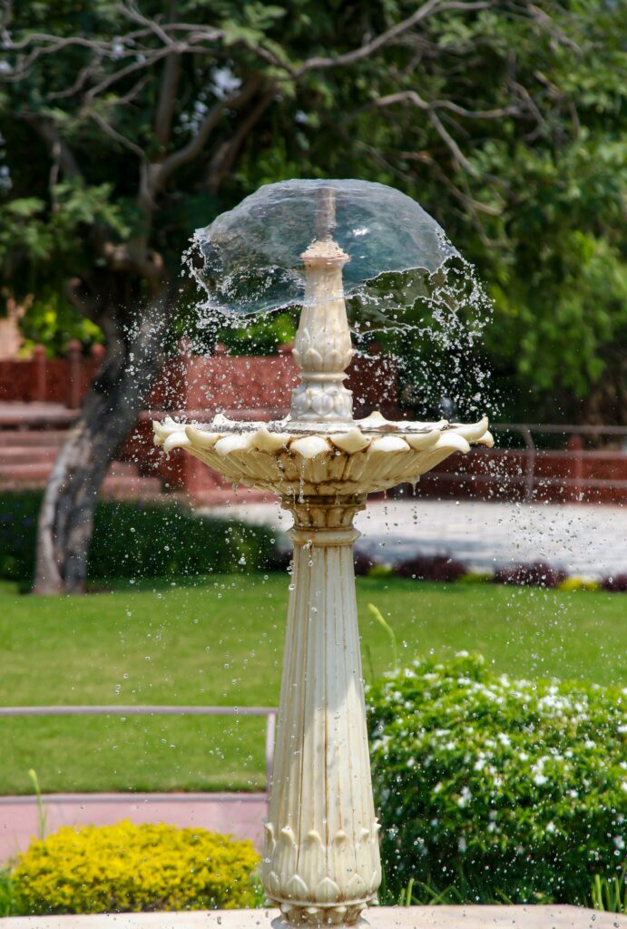 Pequenas fontes de água como elementos decorativos